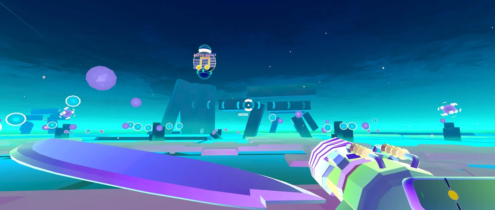 BeatRider is a in-car VR game from holoride. I was responsible for the visual design and in-engine implementation. The development was done by Marvin Kaltenbach. The challenge of creating in-car VR experiences is quite high with one of the biggest challenges being the output device, the HTC Flow VR HMD. It is very low-spec, which means we had to make sure we hit framerate anyway possible, and this means very low poly counts, highly optimized draw calls and little to no overhead.
